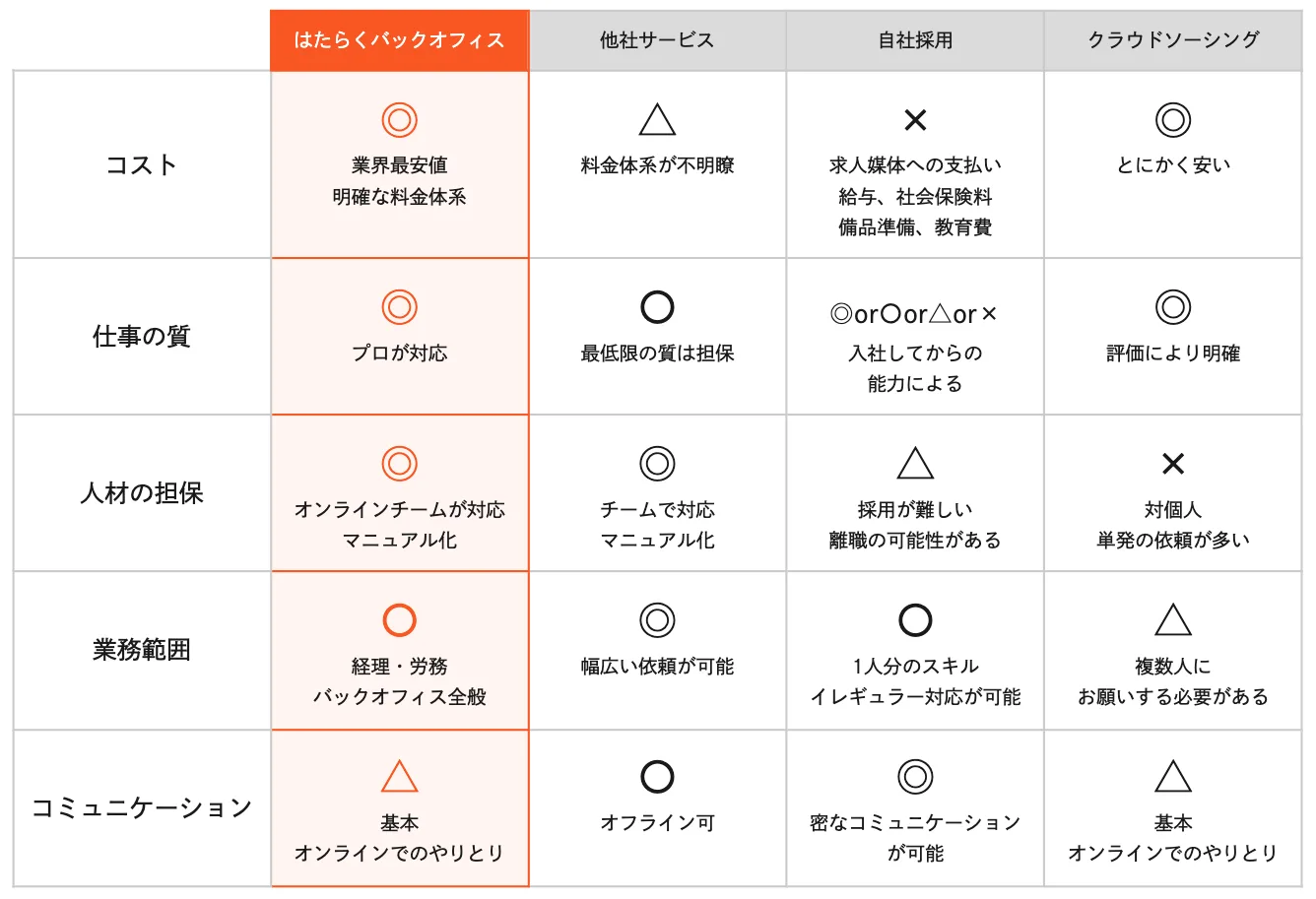 オンラインチームの構築により、バックオフィス代行業界で最安値を実現しております。